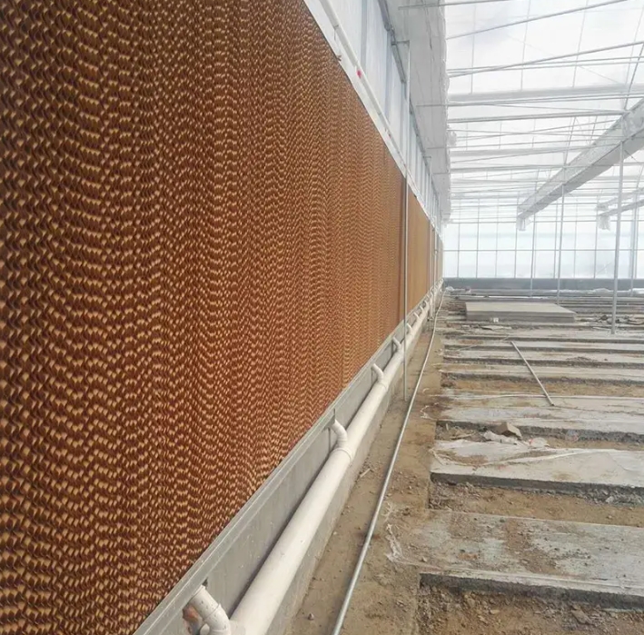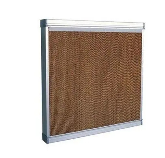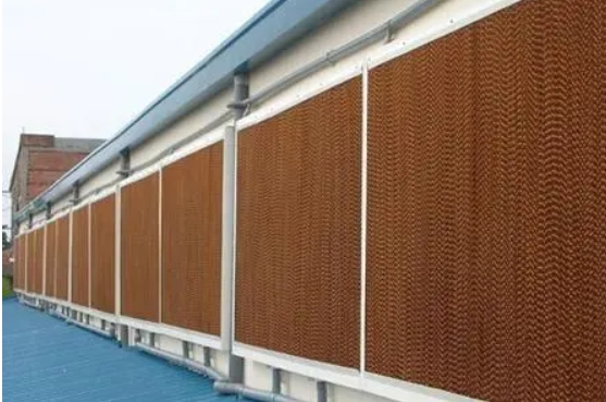 濕簾紙,別名水簾紙,呈蜂窩結(jié)構(gòu),是由原紙加工生產(chǎn)而成。其生產(chǎn)流程大概為上漿、烘干、壓制瓦楞、定型、上膠、固化、切片、修磨、去味等。在國內(nèi),通常有波高5mm、7mm和9mm三種,波紋為60°×30°交錯對置、45°×45°交錯對置。